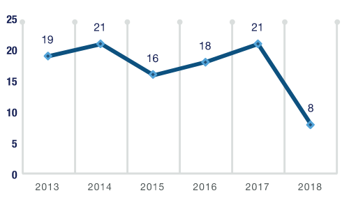 Specialty Hospital of the city of Quito, from 2013 to 2018, obtained from statistical