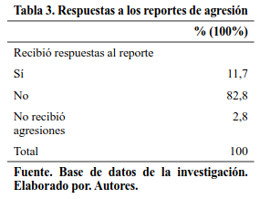 La agresión fue reportada solo en el 35,6% de los casos (62; 175).