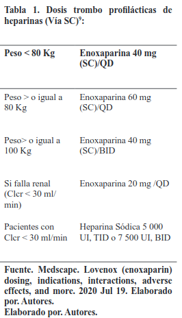 4.1.1 Prevención de trombosis de pacientes con COVID-19