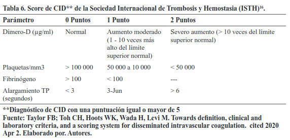 Tang et al., en su estudio mencionan que el 71% de los pacientes críticos con COVID-19 que no sobrevivieron tenían CID utilizando la puntuación CID (ISTH), en comparación con sólo el 0,6% de sobrevivientes17.