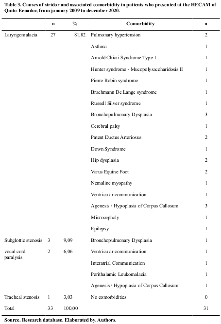 Therefore, the objective was to determine its etiology, associated comorbidities and mortality in patients born with stridor at the Carlos Andrade Marín Specialties Hospital (HECAM) in Quito - Ecuador.