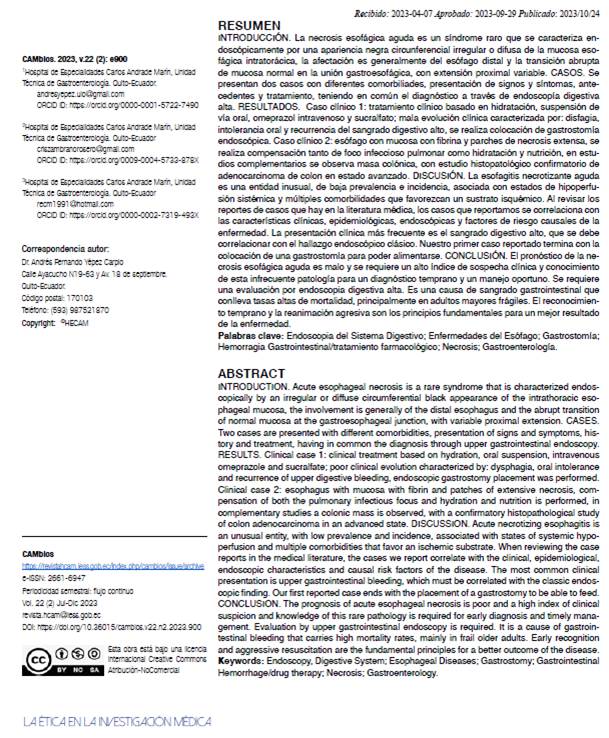 Revista Médico Científica CAMbios del HECAM en Acta 004 de fecha 2023/09/29.